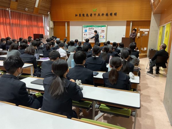 前半は、各ブースで中1・2の全生徒が発表し、後半は、代表者がメビウスホールで発表しました。