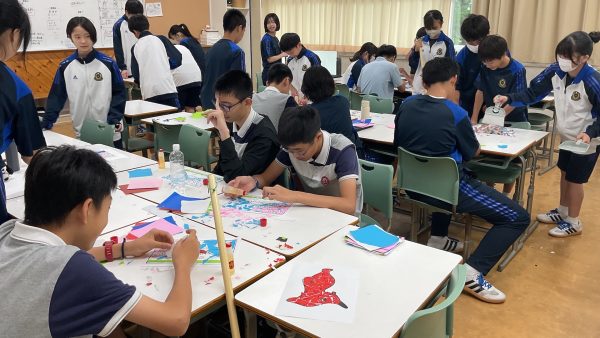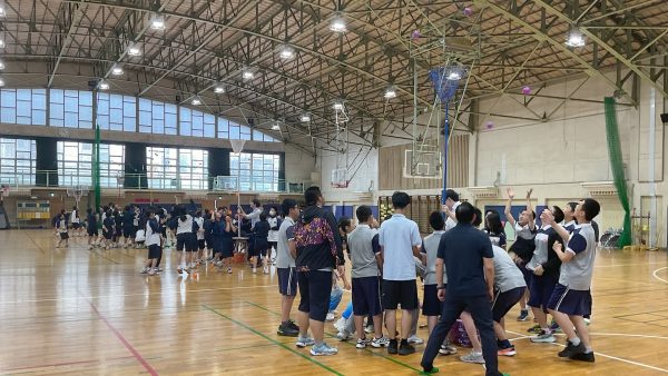 朝9時頃に来校され、午前中、本校中1の生徒たちとレクリエーションやグループごとのアクティビティにより交流を深めました。