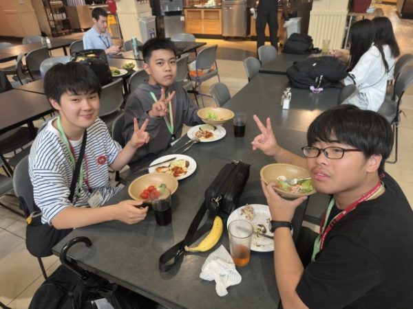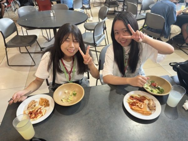 初日の夕食でかつビュッフェということもあり、山盛りに取りすぎて食べきれない生徒もいましたが、みんな楽しそうに初日を終えることができました!