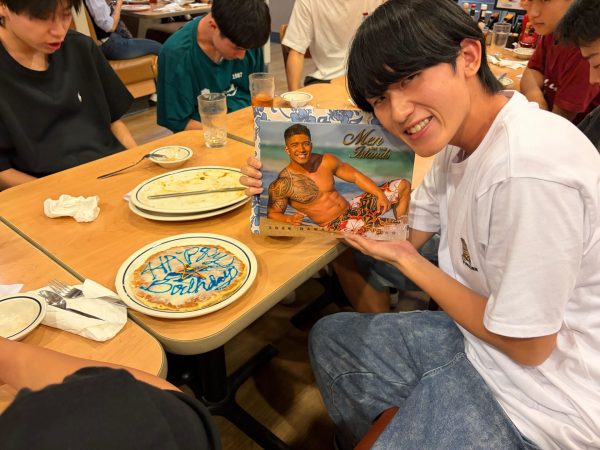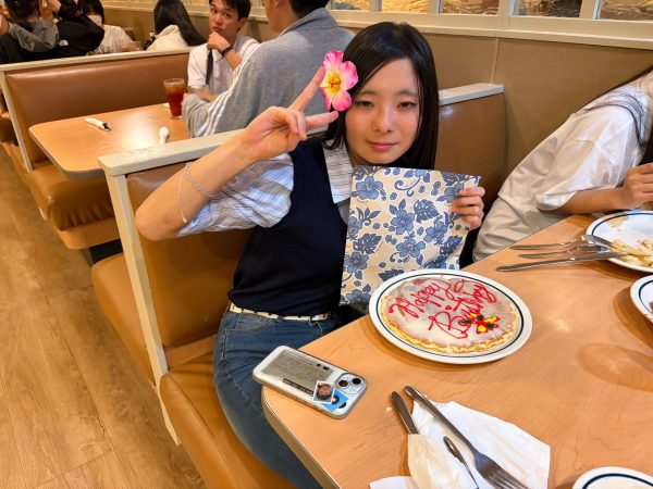 明日の午後は自由行動のため、全員で食べる最後の夕食会で、この研修旅行期間に誕生日を迎えた2名の生徒へサプライズがありました。